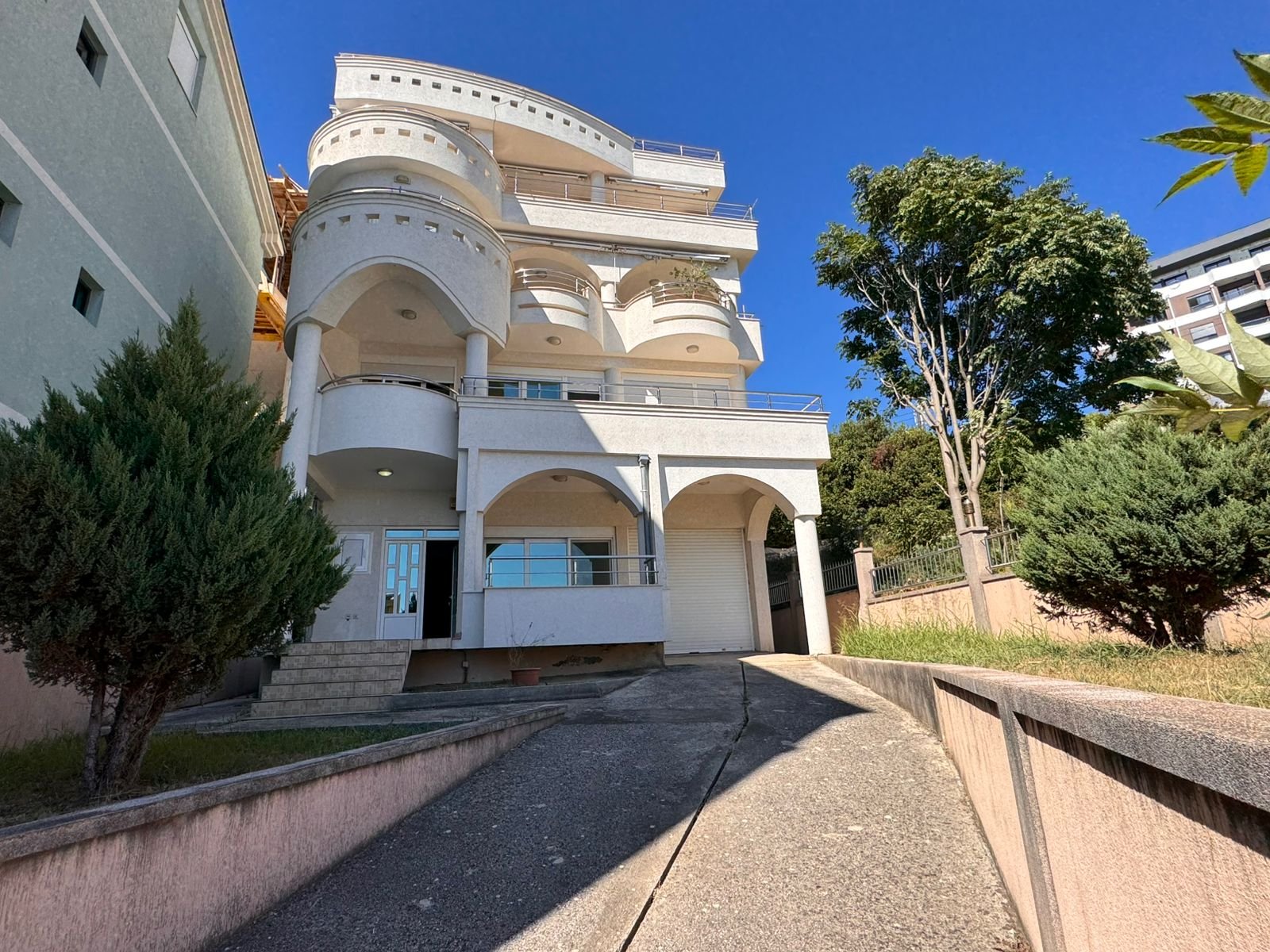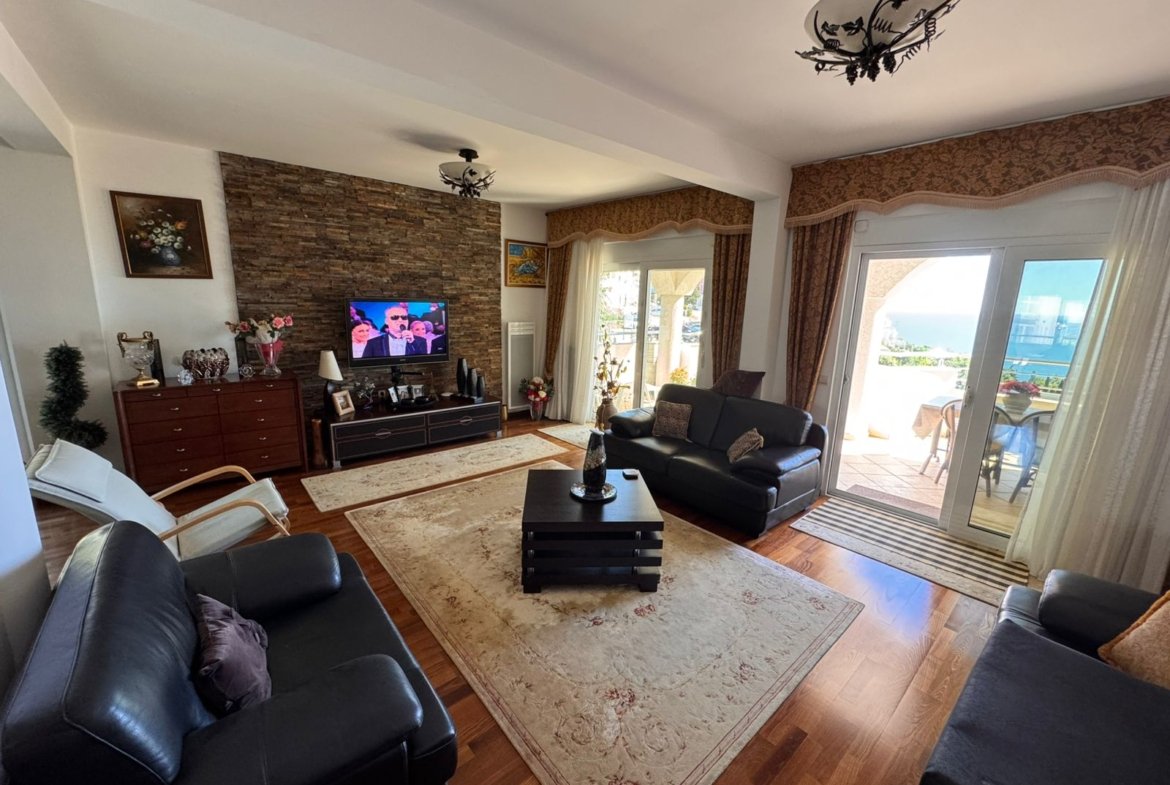House for sale in Pinjesh with a stunning panoramic sea view. This spacious house spreads over three floors and includes a total of 10 bedrooms, 8 bathrooms, and a large open-plan living room with kitchen and dining area.